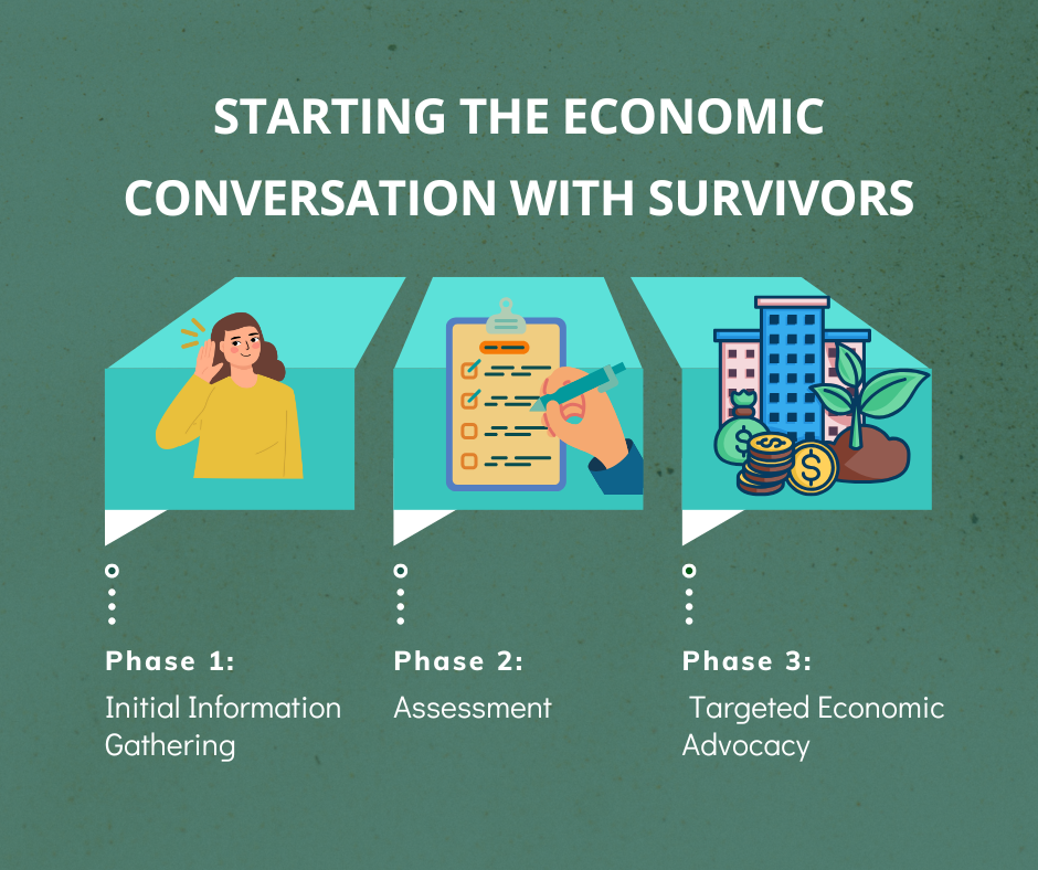 CSAJ has many resources that can help bridge the gap, first by getting comfortable Starting the Economic Conversation with Survivors. In this section, we share various advocacy tools for domestic violence advocates, domestic violence lawyers, and consumer lawyers to assess for economic abuse, identify or screen for legal issues, and partner to address economic abuse and consumer legal challenges that survivors face.